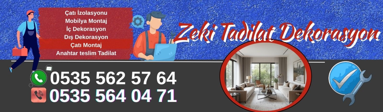 | Mutfak, Banyo, Ofis, Ev Tadilatı; PVC, Parke, Seramik, Boya Badana, Alçıpan, Asma Tavan, Kartonpiyer, Tesisat İşleri (Elektrik, Su, Doğalgaz), Mantolama (İç/Dış Cephe), Yalıtım | Ücretsiz Keşif, Planlama, Malzeme Seçimi, Uygulama, Montaj, Son Kontrol | Anahtar teslimi ve tek elden hizmet sunulur. |